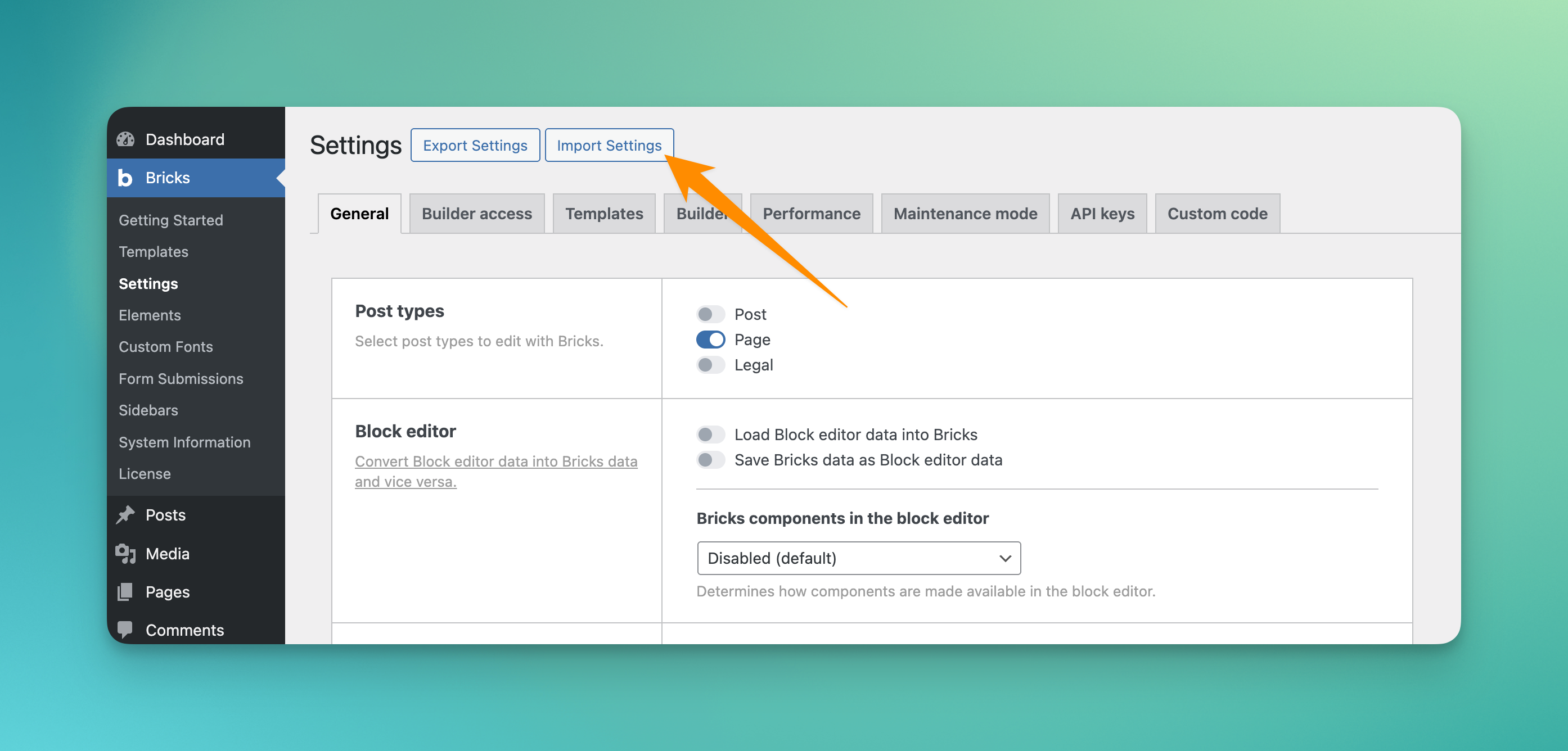 We provide two settings files to establish the default settings for your Bricks project automatically. One is a Bricks Settings file and the other is a Bricks Theme file.