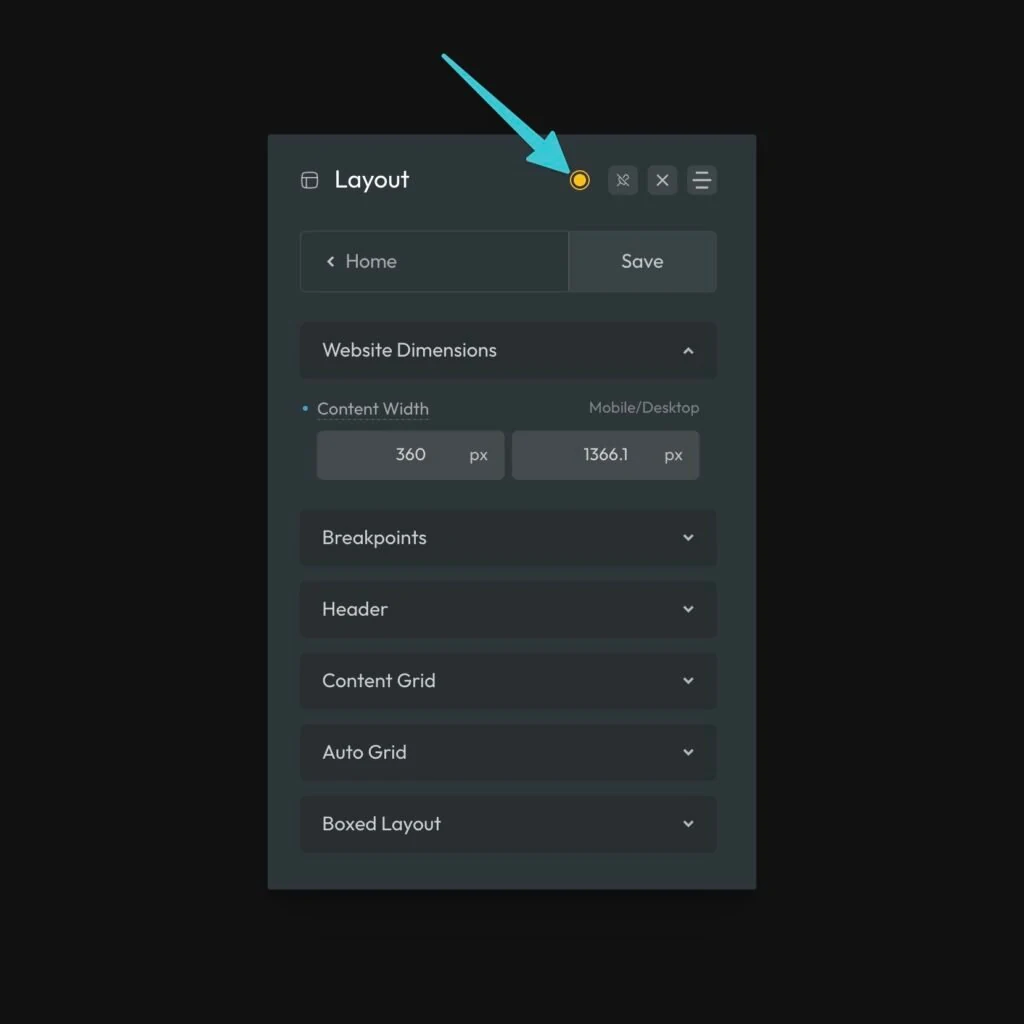 A colored icon in the header lets you know whether the dashboard is in sync with the stylesheet or if there are changes that need to be saved: